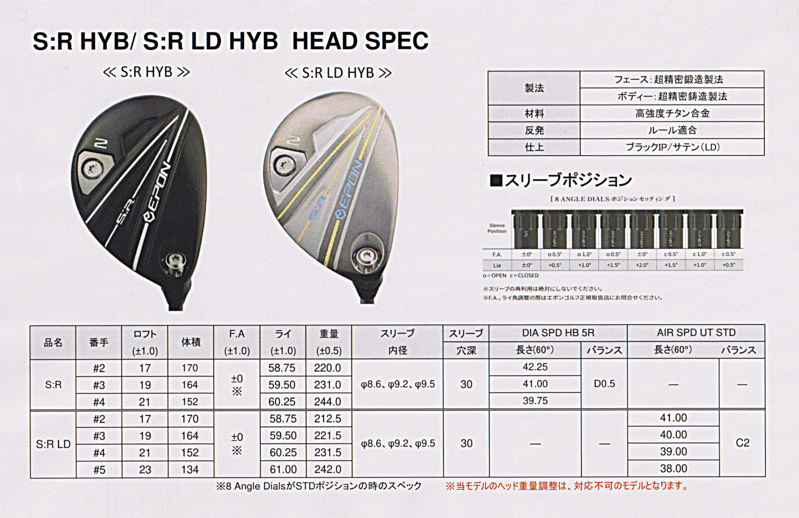 EPON[ S:R HYB ][ S:R LD HYB ]ハイブリッドのヘッドは、第一印象ではフェアウェイウッドを思わせる程の大きなヘッドで、従来のFWとUTの中間サイズのイメージです@@