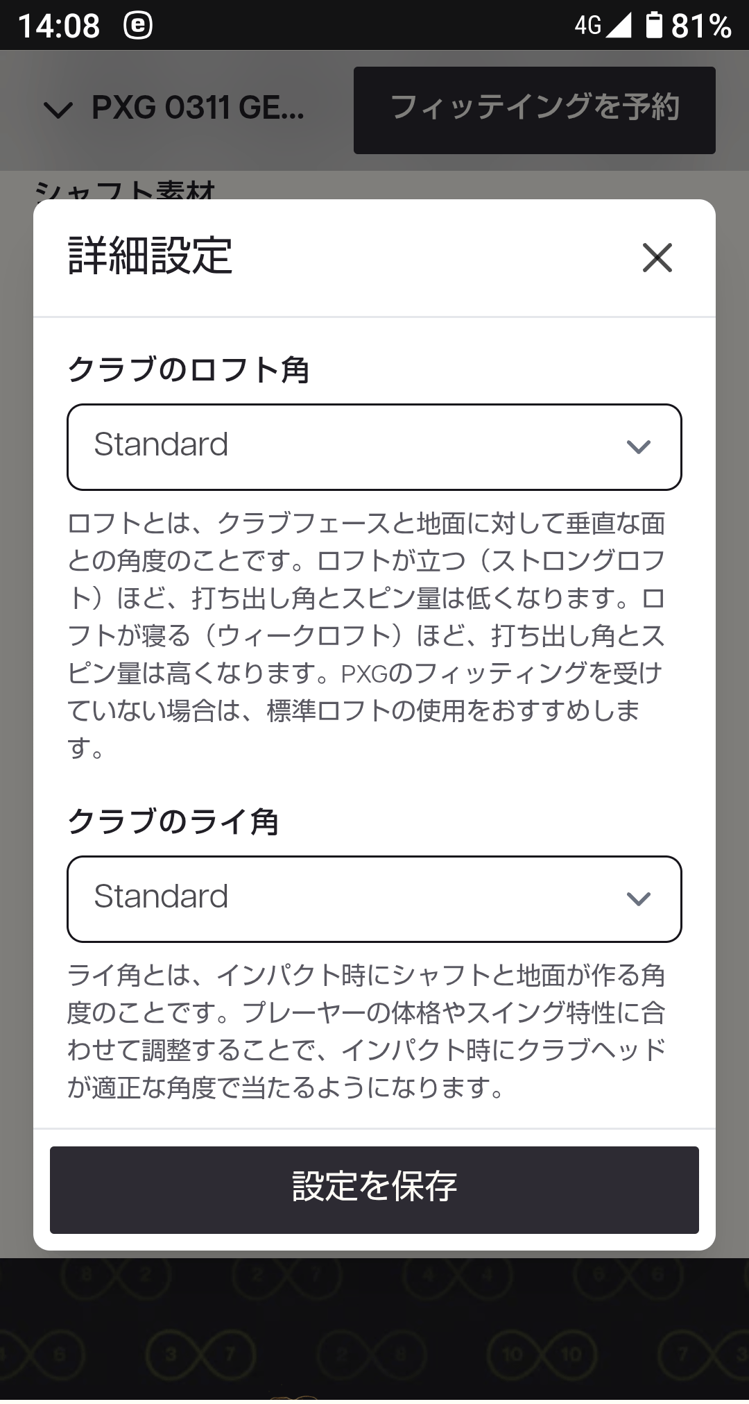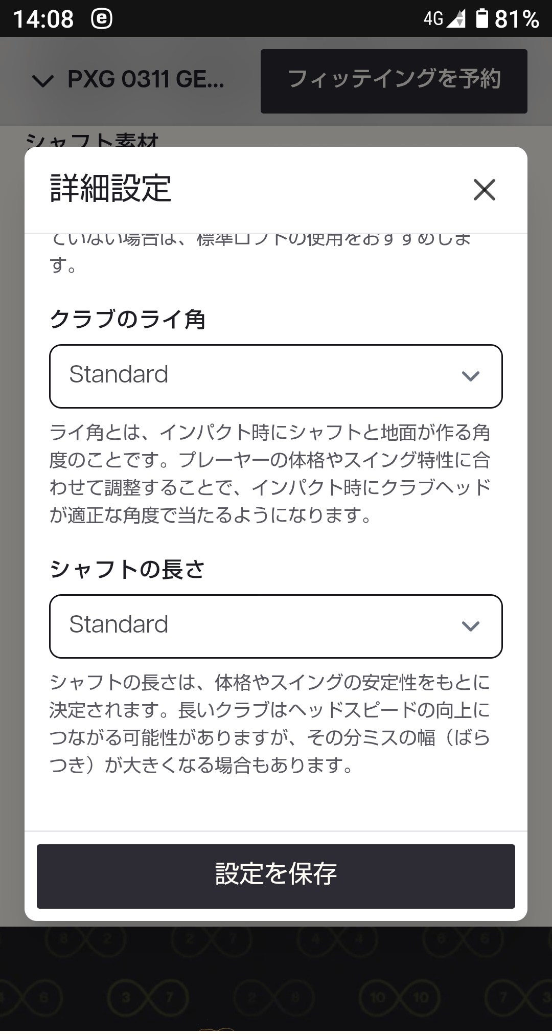 [詳細設定]でシャフトの長さなどの設定項目がありますので、それらも設定しスクリーンショットを撮り保存します。